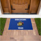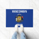 Este diseño presenta la bandera del estado de Wisconsin, que está ubicada en las regiones del Medio Oeste y los Grandes Lagos de los Estados Unidos. Está rodeado por Minnesota al oeste, Iowa al suroeste, Illinois al sur, el lago Michigan al este, Michigan al noreste y el lago Superior al norte. La capital del estado de Wisconsin es Madison y su ciudad más grande es Milwaukee. El estado es uno de los principales productores de lácteos del país y se le conoce como la "Tierra de hadas de Estados Unidos". También se le conoce como el "Estado Badger". La bandera estatal de Wisconsin muestra el escudo de armas del estado con un fondo azul; también muestra texto que contiene el nombre del estado y el año 1848, que fue el año en que Wisconsin fue admitido en la Unión.