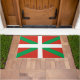 Este diseño presenta la bandera del País Vasco, que es el nombre que se le da a la patria del pueblo vasco. El País Vasco está situado en los Pirineos occidentales, en la frontera entre Francia y España y la costa del Golfo de Vizcaya. El Euskal Herria es el nombre vasco más antiguo documentado de la zona, que data del siglo XVI. Los vascos son conocidos colectivamente como Euskaldunak. El País Vasco comprende tanto las Comunidades Autónomas del País Vasco como Navarra en España y el País Vasco del Norte en Francia. La ciudad más grande del País Vasco es Bilbao, en el lado español de la frontera. Otras grandes ciudades del País Vasco son Vitoria-Gasteiz, Pamplona, Donostia (San Sebastián) y Barakaldo.