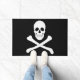 Este diseño cuenta con una bandera tradicional flameada por piratas en el siglo XVIII; la bandera se llama Jolly Roger. Tiene un cráneo y unos huesos cruzados sobre un fondo negro. La bandera fue diseñada originalmente para intimidar a los enemigos, ¡pero ahora se puede usar para hacer que los fiestas y otros eventos sean más emocionantes! Es un diseño histórico que todavía se puede reconocer al instante. ¡Tráeme a los maderos, compañeros de barco!