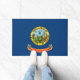 Este diseño presenta la bandera estatal de Idaho, que está en la región noroeste del Pacífico de los Estados Unidos. El estado limita con otros seis: Montana, Nevada, Utah, Wyoming, Washington y Oregón. También comparte una pequeña parte de la frontera canadiense con la provincia de Columbia Británica. El apodo oficial del estado es el "Estado Gem", que se refiere a la belleza natural de Idaho. La bandera estatal de Idaho contiene las palabras "Estado de Idaho" en letras de oro bajo el sello del estado. El sello representa a un minero y a una mujer que representa igualdad, libertad y justicia. Los símbolos de la foca representan algunos de los recursos naturales de Idaho, incluyendo minas, bosques, tierras de cultivo y vida silvestre. La capital del estado y la ciudad más grande es Boise. Otras ciudades importantes de Idaho incluyen Meridian, Nampa, las cataratas de Idaho, Pocatello, Caldwell, Coeur d'Alene, Twin Falls, Post Falls, Lewiston, Rexburg, Eagle, Moscú, Kuna, Ammon, Chubbuck, Hayden, Mountain Home, Blackfoot, Garden City, Jerome, Burley, Star, Standpoint, Hailey, athdrum, Middleton, Payette, Emmett, Rupert, Preston y Weiser.