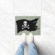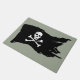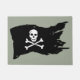 ¡Entra en esta casa a tu propio riesgo! Clásica bandera pirata "jolly roger" con cráneo y huesos cruzados ondeando en el viento.