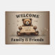 Verwandle deinen Eingangsbereich in eine einladende Wohlfühloase mit der liebevoll gestalteten Fußmatte! Im Zentrum steht ein freundliches Bärenjunges, das gemütlich sitzt und ein rustikales Holzschild hält. Das Besondere? Der Text auf dem Schild und der Text im Design sind individuell anpassbar – füge einfach deinen Familiennamen oder eine persönliche Botschaft hinzu, wie „[Family Name]’s Den“. Darüber begrüßen die Worte „Welcome to the“ und „Family and Friends“ deine Gäste auf charmante Weise.