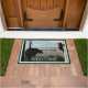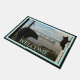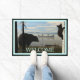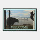 Dos nativos estadounidenses reman su canoa a través de un lago, justo en la costa, en una mañana nublada. Una cerda negra de oso no está muy contenta y ha enviado su cachorro a un abedul cercano por seguridad. También aparece el texto "BIENVENIDA".