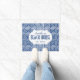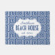 This upscale nautical doormat has a vintage Art Deco vibe in navy blue and white. The pattern is a geometric Greek key - with a white curvy banner in the center for you to add your personalized text.