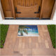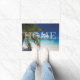 Esta imagen muestra palmeras en la playa y "hogar dulce hogar". Este bonito diseño le dará a su casa un toque de estilo y frescura en verano.