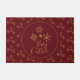 Un felpudo con un ilustracion de copos de nieve dorados con elegantes formas cristalinas. La tipografía de moda dice: Bebé, hace frío afuera. Fondo rojo de Borgoña y patrón dorado de copo de nieve.