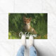 Diseñado con una fotografía que muestra un lindo zorro bebé de piel roja y blanca. Rodeado de hojas y hierbas verdes.