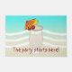 Muestra una imagen de una pina colada y dice "¡El fiesta empieza aquí!"