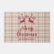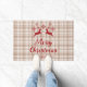 Felpudo Beige Plaid Red Deer Merry Christmas Custom Nombre