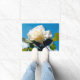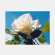 Rosa blanca bajo cielo azul. La vibrante foto de un hermoso rosa floreciente hace un gran regalo de arte floral en la pared. La belleza tranquila de la rosa blanca refleja nuevos comienzos, pureza, lealtad e inocencia. Las rosas blancas simbolizan el amor joven que la novia tiene por su cónyuge. Las rosas blancas también simbolizan el fundamento de una relación, razón por la cual a menudo se las ve en un día de boda. La rosa blanca es una flor boda tradicional. La rosa blanca es una flor apropiada para celebrar un nuevo vínculo romántico y marital.