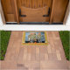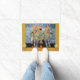 Esta estera de puerta ofrece los perros perdigueros de oro vestidos como espantapájaros en un campo del maíz. El mensaje lee, "cosecha bendiciones". Esta estera sería perfecta para su adornamiento de la acción de gracias o del otoño.