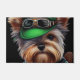 Un amigo peludo detrás de las manillares de una brillante bicicleta verde, usando un traje verde del Día del San Patricio que hace que las cabezas se vuelvan. El perro está vestido con un conjunto festivo, con una corbata verde de arco y un sombrero superior a juego que se sienta cómodos sobre su cabeza. El conjunto presenta un diseño intrincado de rocas de champú y leprechauns, lo que deja claro que este perro está listo para celebrar el Día de San Patricio con estilo.