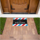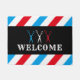 Felpudo Bienvenida a Barbershop Blue Red Stripes