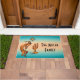 Personaliza este singular Doormat de Kokopelli, al suroeste de Kokopelli, "uno de los tipos"! Cuenta con un cobre del suroeste de Kokopelli que toca la flauta y baila alrededor de un cactus bajo el sol...sobre un fondo de sol turquesa y Naranja. Este es un original diseño de arte "One of a Kind" del artista Kerry Miller.