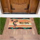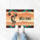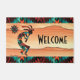 Personalice este singular Doormat suroeste de "Uno de los tipos". Cuenta con un Kokopelli que toca la flauta y baila bajo el sol en el desierto..en un fondo suroeste en turquesa, Naranja y negro! Este es un original diseño de arte "One of a Kind" del artista Kerry Miller.