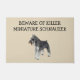 El humorístico perro Schnauzer cría en la puerta principal esteras de bienvenida con una imagen gráfica de la raza de perro y el dicho gracioso diciendo Cuidado con el Asesino Schnauzer en miniatura como una manera divertida de dar la bienvenida a los huéspedes de su casa.