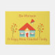 Eres una familia educada en casa y feliz. Muestra tu orgullo de la educación en casa hoy con este único felpudo. Este diseño tiene una casa azul con un techo rojo. A ambos lados de la casa hay árboles naranjas. Arriba hay una plantilla para introducir el nombre de su familia. Debajo está "Una familia educada en casa feliz", escrito con letra de moda. Haga su pedido hoy mismo! gráficos de Prettygrafik Design (https://www.etsy.com/shop/Prettygrafikdesign)