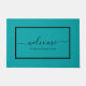 Doormat de bienvenida moderna con un guión negro sobre un fondo verde azulado. Personaliza con tu apellido o texto.