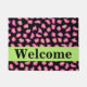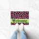 Bienvenido a su casa con esta elegante y sofisticada fucsia rosa y rosa brillante y tapicería de piel de leopardo negro. Esta alfombra de puerta se personaliza con la palabra Bienvenida que puede cambiar a otra palabra o nombre. Una tira de color verde lima da un área para la personalización y un toque de color. Disfrute de este diseño popular y contemporáneo que le dará un toque de decoración casera de moda. Este diseño de leopardo está disponible en varias combinaciones de colores en esta tienda.