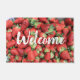 Tapón de puerta de bienvenida con una fotografía colorida que muestra un montón de extravagantes fresas rojas.