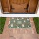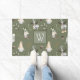 Esta linda alfombra de bienvenida de los Navidades gnome se verá perfecta debajo de su puerta. Los diseños incluyen gnomos bonitos, renos y brotes sobre un fondo verde sabio. Personaliza con tu monograma