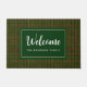 Añada un estilo festivo y elegante a su entrada con este rústico felpudo de búfalo envuelto en verde y rojo con acentos dorados. El diseño presenta "Bienvenidos" en una tipografía elegante y elegante. Personaliza con tu apellido o presupuesto favorito. ¡Disfrútalo!