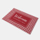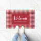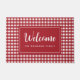 Añada un estilo festivo y elegante a su entrada con este rústico felpudo de búfalo con estampado en colores blancos rojos. El diseño presenta "Bienvenidos" en una tipografía elegante y elegante. Personaliza con tu apellido o presupuesto favorito. ¡Disfrútalo!