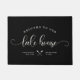 La lectura de guiones modernos de cepillo de moda BIENVENIDA A NUESTRA CASA LAKE en un diseño moderno basado en la tipografía. Excelente decoración personalizado de casa en el lago para su hogar lejos de casa. La estera de la puerta negra, romántica y elegante, ofrece un ilustracion dulce en canoa entre su ubicación y el año de creación.