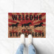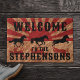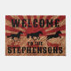 A tu marido le encantará este divertido felpudo de Jessica Amber. Presenta un saludo de bienvenida con su apellido familiar, en una fuente occidental clásica. También cuenta con siluetas negras de caballos, lanzando sombras rojas del sol rojo en alza. El fondo tiene una alfombra falsa marrón o textura de coco Puede personalizar el texto según sea necesario, así como reemplazar la foto de fondo. ⭐ Para más artículos de casa rústicos, visita mi tienda Zazzle.com/JessicaAmberArtist ⭐ Para pedidos de personalizados, contáctame a través de la mensajería de Zazzle