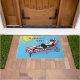 Felpudo Bienvenida al gato gracioso en verano en tonos