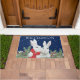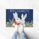 ¡Una alfombra de puertas de bienvenida personalizada para llevarte a casa a través de Navidades y todas las vacaciones de invierno! Mi acuarela muestra dos conejos posando en ramos de verduras festivas de temporada -abeto, tejo, baya de nieve y holly, con bayas rojas y blancas que atraen a los ojos. El Sr. Bun exhibe una acogedora bufanda roja y la Sra. Bun lleva una flor de nieve. La nieve resplandeciente cubre la escena. Tu nombre con un tipo de letra clásico está en la parte superior de la alfombra. Es fácil hacer personalizares con la plantilla de texto y el menú de edición. Perfecto para cualquier amante de los animales, la naturaleza o el conejo.Artes y diseño originales y singulares de Tuzi Williams.
