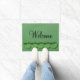 Manzanas verdes sobre la alfombra verde de bienvenida