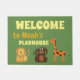 Bienvenido al Doormat de una casa de juegos para niños con adorables ilustraciones animales de safari de un león personalizado, un mono y una jirafa. Edite el nombre y cambie el color de fondo si lo desea. Ideal para una casa de juegos o club infantil para niños o chicas.