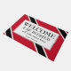 Elegante y patriótico tapete de bienvenida trinitense con el texto BIENVENIDO Y BIENVENIDO A TODOS LOS QUE ENTRAN AQUÍ (EXCEPTO TRESPASSERS). El fondo es la bandera de TRINIDAD y TOBAGO. Todo el texto es PERSONALIZABLE, así que puede modificar la redacción para que se ajuste a sus necesidades, por ejemplo, añadir el nombre de la familia, el lema de la familia, la cita inspiradora. Elija entre una amplia selección de diseños de banderas de Trinidad por diseños bereanos.