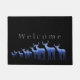 Este felpudo tiene una insólita ocurrencia de tonos azules cruzando por él. Inusual porque los cuerpos del ciervo/alce tienen una escena paisajística por todas partes. Texto de bienvenida escrito en color gris plateado arriba para saludarte a ti y a tu invitado que se acercan a tu puerta. Mostrado sobre fondo negro. Personalizar este artículo o compre tal y como fue diseñado. Imagen de stock cortesía de www.freepik.com
