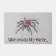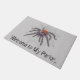 Fun Halloween fiesta clásica felpudo de bienvenida doormat con una araña gigantesca, insólita pero fresca, y bolígrafo web y ilustracion de tinta. ¡Feliz Halloween!
