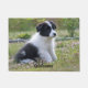 Deja que Jazmine el cachorro de Border Collie sentado en un campo de flores salde a tus visitantes con este felpudo super bonito con texto personalizable.