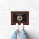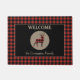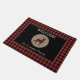 Una silueta de búfalo enlucida de ciervo enlosado se encuentra en el centro de un círculo de bronceado en esta bonita alfombra de la puerta. El círculo se coloca sobre un fondo negro, que está enmarcado con un borde de manto rojo y negro. El texto de su personalizado está en coincidencia con el que está por encima y por debajo de la imagen de círculo y ciervo. Perfecto para una cabaña, casa de campo, pero cómodo en la ciudad también!