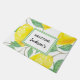 Jugoso, deliciosos limones de color agua en un fondo amarillo, verde y blanco. Marco blanco y verde con plantillas para un nombre de familia. El nombre está escrito en un guión con letras a mano, letras negras. Con el texto: Bienvenido