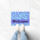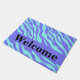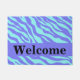 Bienvenido a su casa con esta elegante y colorida alfombra de piel de cebra morada de color turquesa y lavanda. Esta alfombra de puerta se personaliza con la palabra Bienvenida que puede cambiar a otra palabra o nombre. Una tira de lavanda perinchera le da un espacio de personalización al personalizar. Disfrute de este diseño popular y contemporáneo que le dará un acento decorativo casero de moda. Este diseño está disponible en varias combinaciones de colores en esta tienda.
