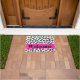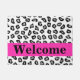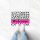 Bienvenido a su casa con esta elegante y sofisticada alfombra de piel de leopardo blanco y negro. Esta alfombra de puerta se personaliza con la palabra Bienvenida que puede cambiar a otra palabra o nombre. Una franja de fucsia rosa y rosa brillante da un espacio para la personalización y un toque de color. Disfrute de este diseño popular y contemporáneo que le dará un toque de decoración casera de moda. Este diseño de leopardo está disponible en varias combinaciones de colores en esta tienda.