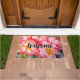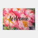 Este felpudo presenta una fotografía de peonías rosadas y la palabra "Bienvenidos". El texto es editable para que pueda cambiarlo a lo que quiera decir y también cambiar el tamaño de letra, estilo y color, también. Si no quieres ninguna palabra, simplemente borra la palabra "bienvenido". Foto de Cristina Anne Costello, 2021. Disfruta de tu nuevo Doormat de bienvenida de los pueblos rosados editables!