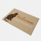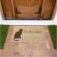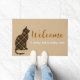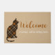 Doormat con un encantador gato encurtido y algo de texto " Bienvenida - Un gato encantador está viviendo aquí " Patrón cálido de color - fondo de color sólido bronceado. Ideal para la casa de un amante de los gatos. También una buena advertencia para aquellos que tienen alergia felina . Diseño de Alma Wad .