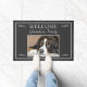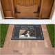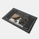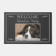 Alfombra de bienvenida gris oscuro rústica moderna con plantilla de foto, nombre de familia y letra de bienvenida.