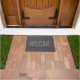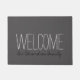 Bienvenida familia nombre, guion, felpudo gris oscuro rústico moderno. Puede cambiar fácilmente el texto y el nombre.