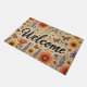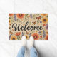 Un encantador diseño floral recibe a los huéspedes con calidez y alegría. El entorno ofrece una deliciosa variedad de girasoles, margaritas y otros acentos botánicos en naranjas blandos, amarillos y verdes. La palabra "Bienvenida" se escribe elegantemente en la alfombra en negrita y en negro, añadiendo un toque de clase al animado motivo inspirado en la naturaleza. Esta alfombra aporta un ambiente alegre y acogedor a cualquier puerta.