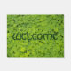 Doormat de bienvenida decorativo que presenta una foto floral de un verde brillante, pequeñas rocas de champú y la palabra "Bienvenidos" en un estilo de fuente celta. Uso en interiores o en áreas cubiertas de entrada. Seleccione su tamaño de alfombra.