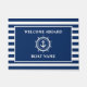 Bienvenida náutica a bordo Anchor Estrella Helm Nave franjas azules y blancas Tu Barco Nombre Mat