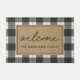 Añada un toque de casa de campo a su entrada con este rústico felpudo de búfalo con estampado en negro, marfil y marrón. "Bienvenida" aparece en el centro en letras manuscritas casuales; personaliza con tu nombre de familia debajo.