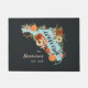 Descubra su estado natal o su lugar de vacaciones favorito con este bonito felpudo de Florida con un mapa de siluetas del estado adornado con coloridas flores tropicales, follaje verde y jugosos naranjas. "Bienvenida" está inscrito dentro de la escritura con letras a mano. Personaliza con tu apellido y año establecido.